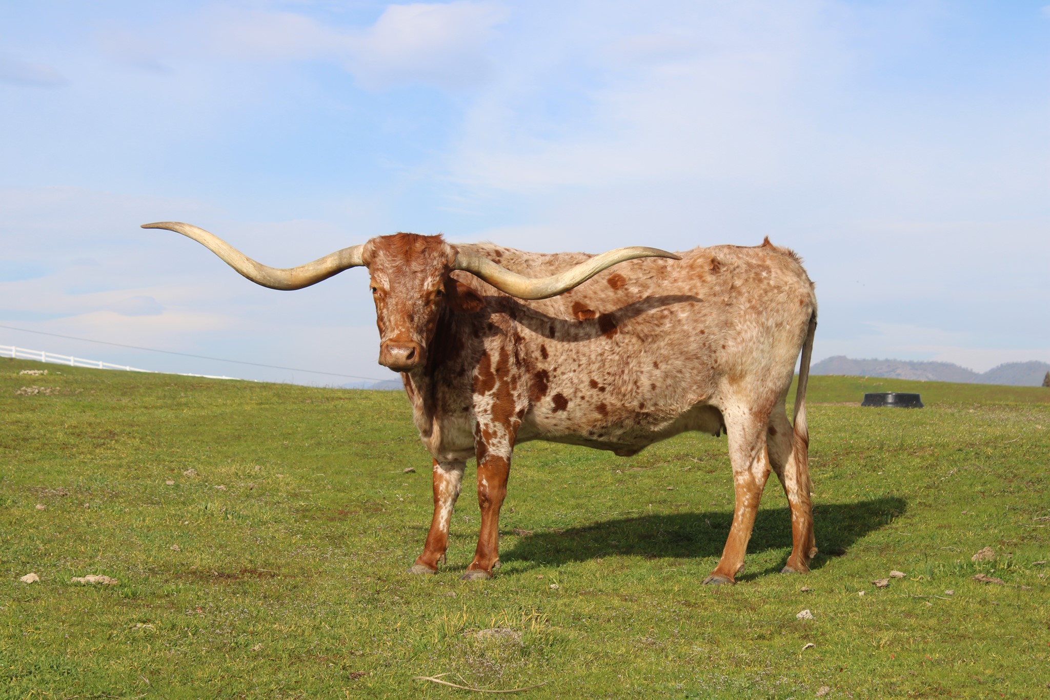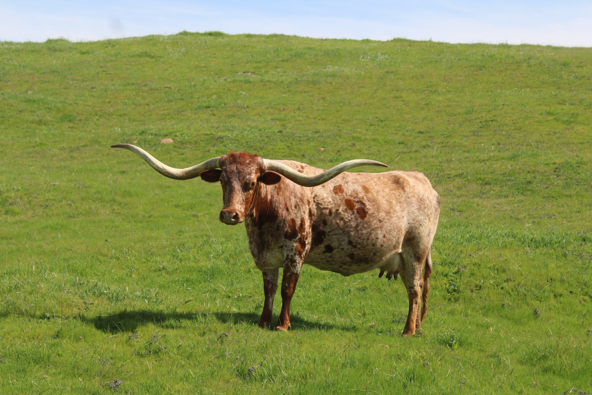 Beautiful roan twisty horned cow! She is a half sister to our Carmen 123 CB cow. We love this maternal line. Looking forward to her 2025 calf by Ironman HR