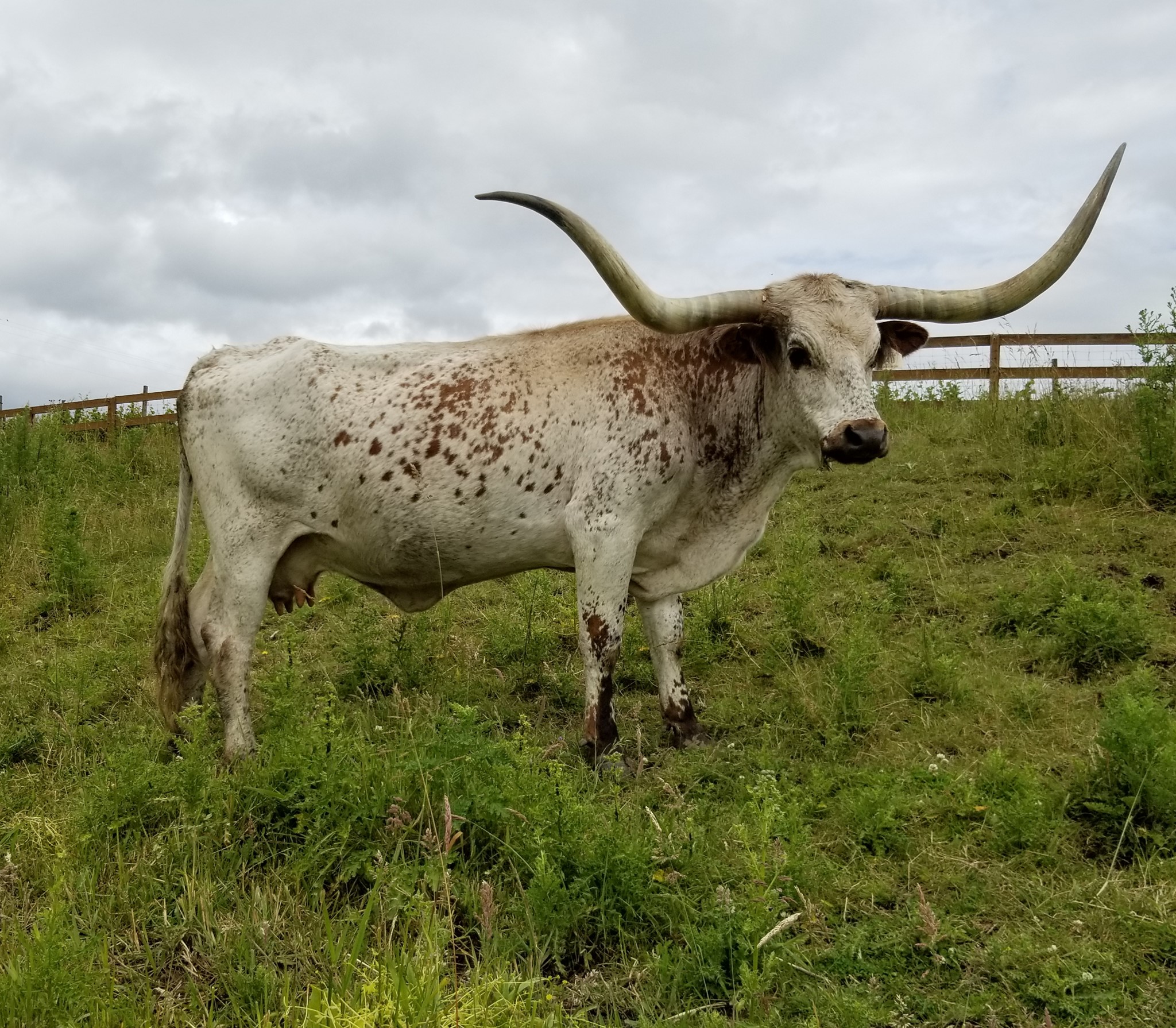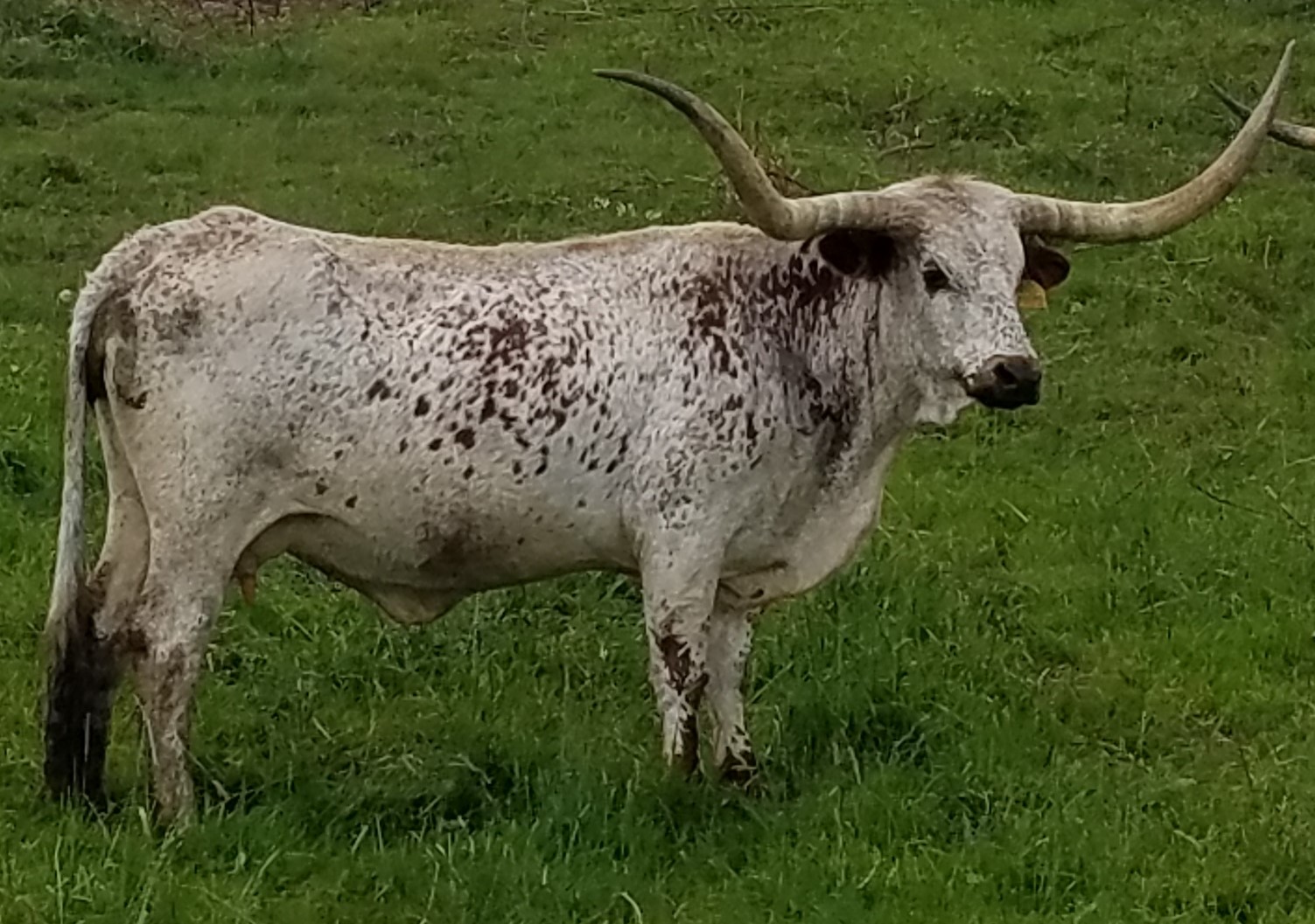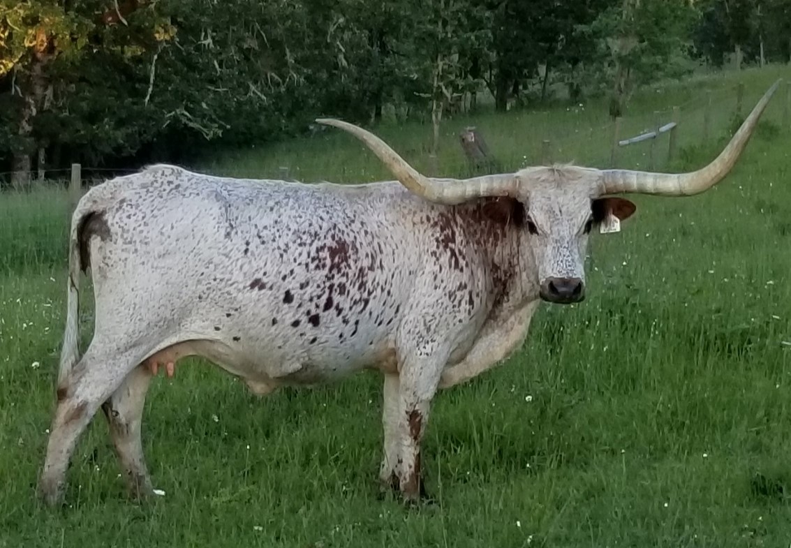 A very big daughter of Top Caliber out of a Shadow daughter.Good heavy horn. Great calves.