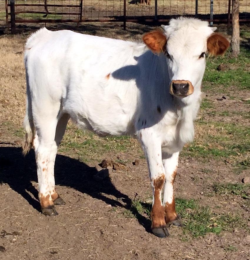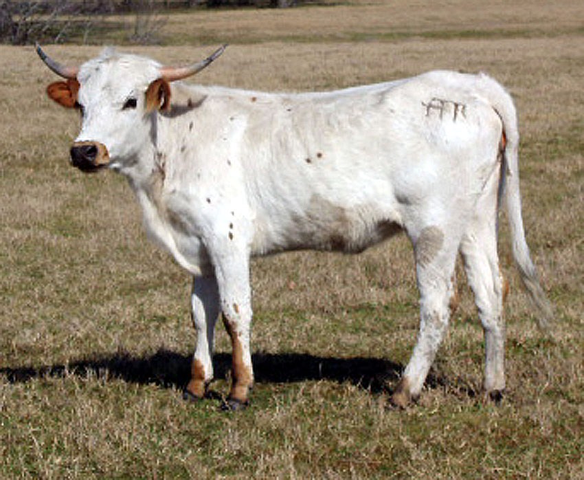 THIS CALF IS GOING TO BE A LARGE COW WORTHY OF GREAT OFFSPRING. HER BONE STRUCTURE AND HIP SIZE BELIE A GREAT ANIMAL. WHILE THIS HEIFER IS SLOW TO DEVELOP WE EXPECT OUTSTANDING RESULTS. WHEN A CALF HER HORNS WERE NARROW AND PENCIL; ABOUT 4 " BROKE OFF EACH SIDE AT TWO YEARS OLD. OFFSPRING WILL BE AWESOME.