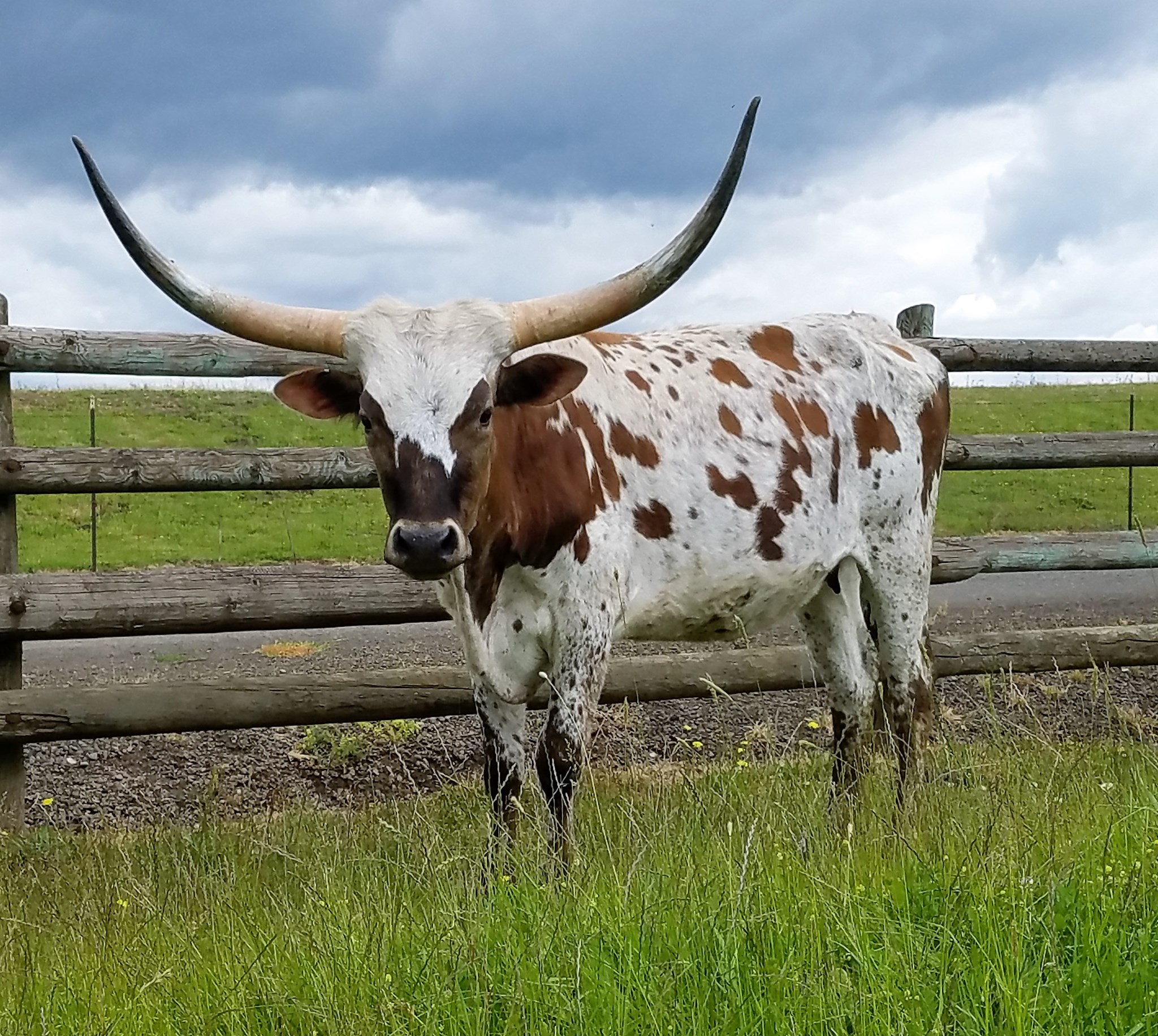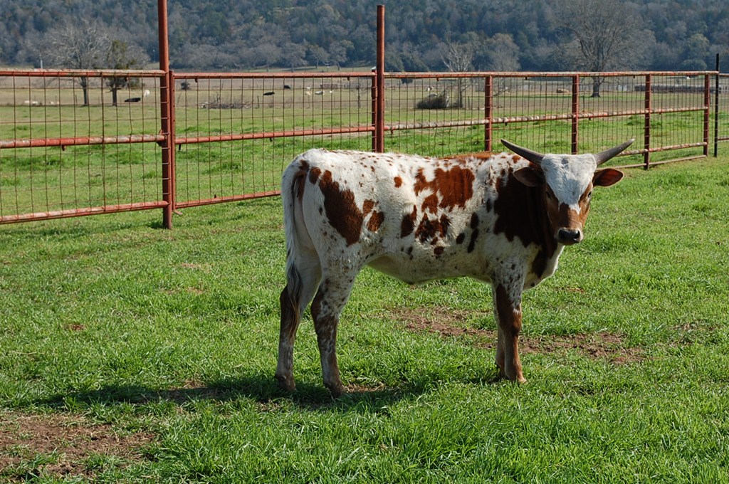 Great young cow with an amazing pedigree. What she doesn't have in tip to tip she definitely makes up for in total horn.