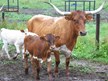 Becca is the poster cow for Pasture Pet. She is easy to work and be around, plus she raises great calves. "Oh she eats hay cubes out of your hand too!"