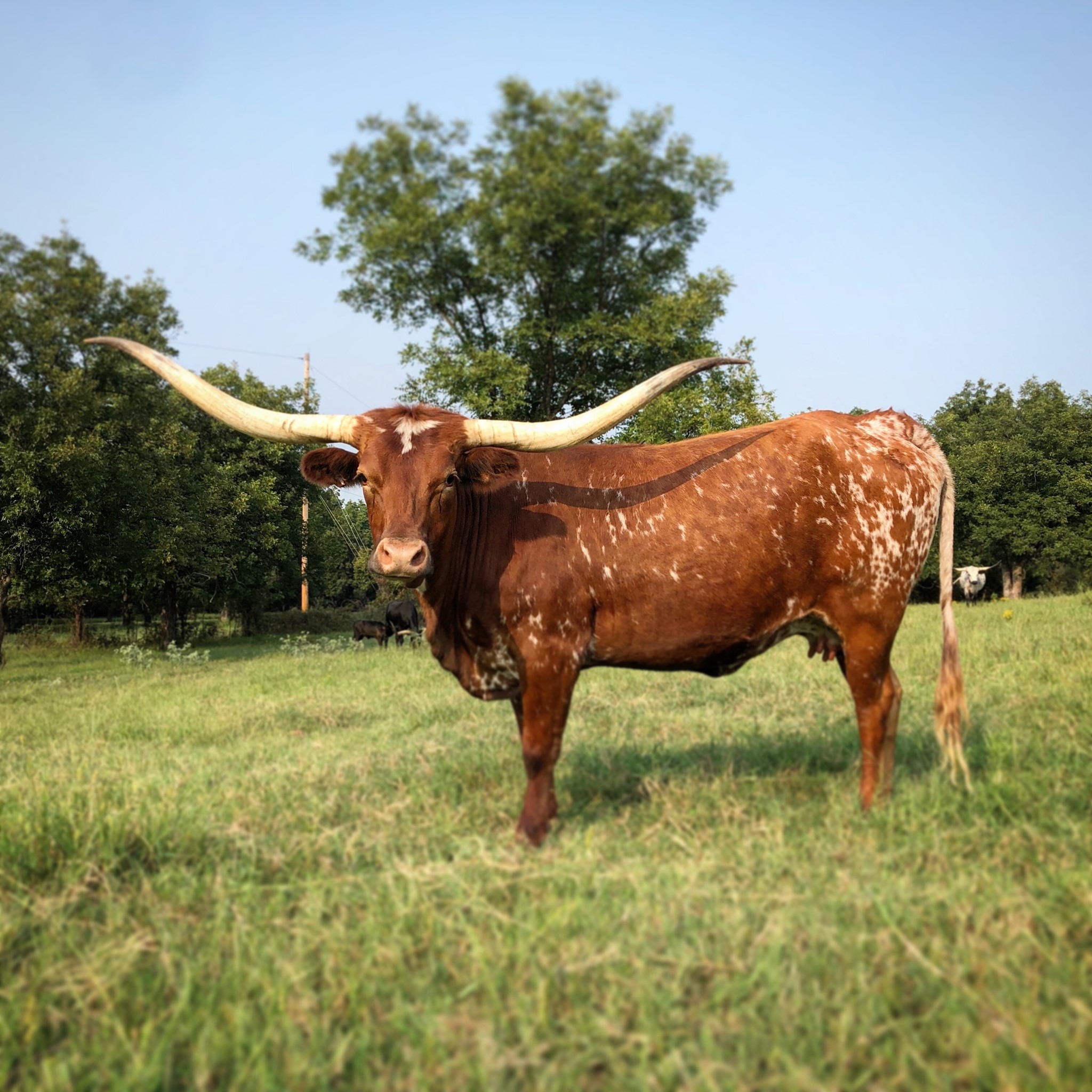 Aside from this young female being everything that I personally look for in a TL cow, she brings some absolute phenomenal breeding to the table with her pedigree. Awesome Shiloh is a Top Caliber granddaughter. Her dam side is a combination of old, proven genetics. Her grandam is the Delta Petite cow, bred by F.M. Graves. The young men at Mountain Creek Longhorns fertilized an embryo from that cow to Emperor, which produced Awesome Petite. Lot's of hard work and patience in Awesome Shiloh's pedigree. She is proving herself in our herd as a top producer. She is currently exposed back to Sweetwater BCB for her sixth calf! Millennium Futurity Eligible.