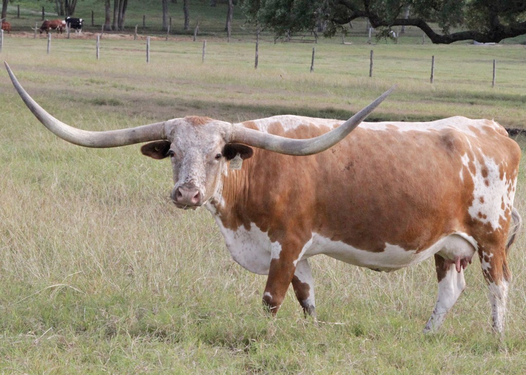 Gorgeous big young cow. Tremendous pedigree. JP Rio Grande breeding on top, Coach on bottom. She should mature around 82-85" TTT. Great mother and really nice calves.